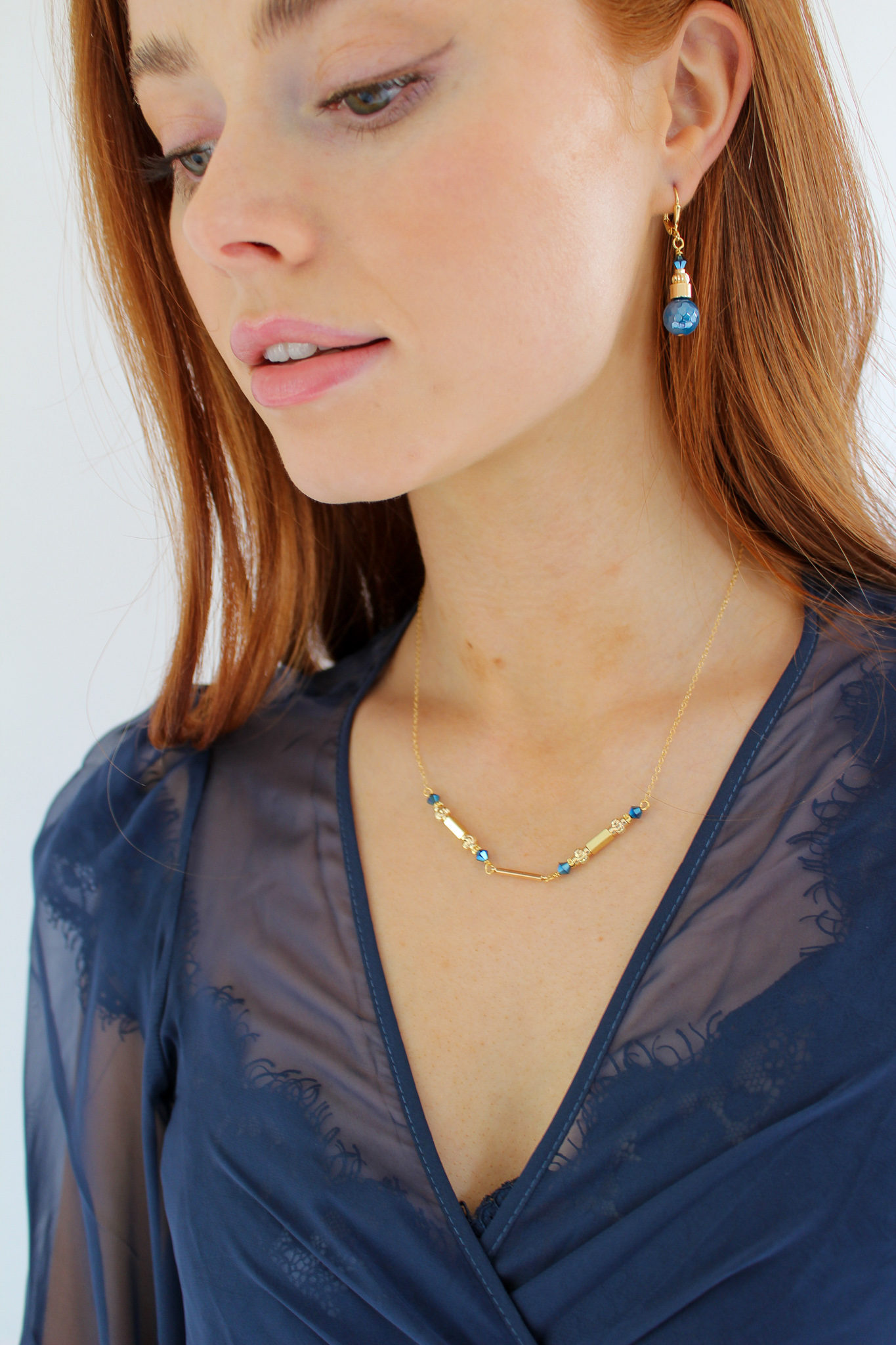 The piece closes with a gold plated French Hooks- all metals used in the piece are hypoallergenic, lead and nickel free.