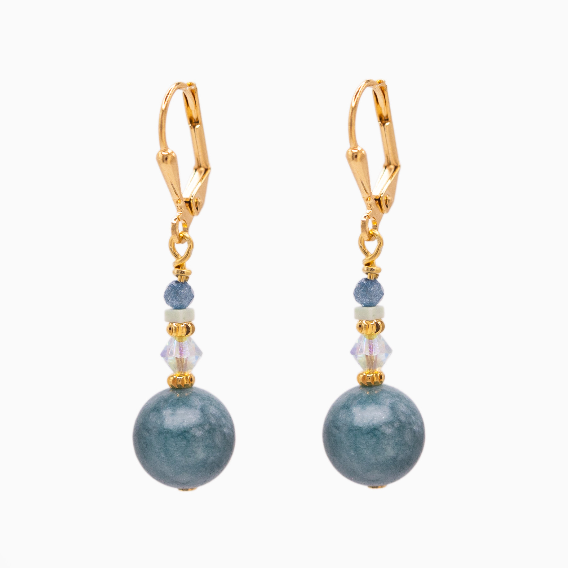 Inspired by the gentle rhythm of the Atlantic Ocean, the Atlantic Drift Aqua Linear Earrings are a refined blend of movement, colour, and light. Handcrafted in Ireland, these elegant earrings feature soft aqua tones, sea-inspired blues, finished with warm gold accents and sparkling Swarovski Crystals.