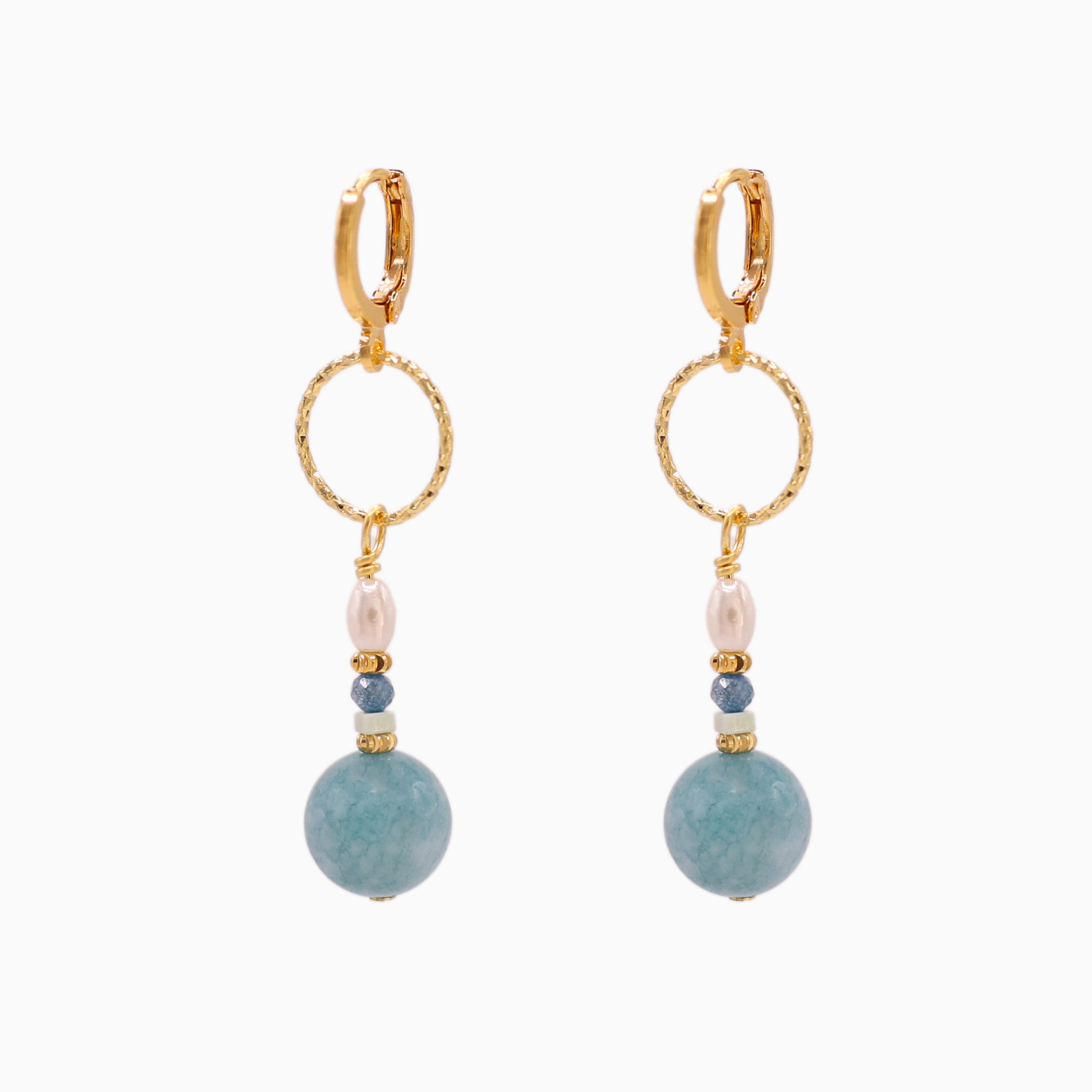 Inspired by the gentle rhythm of the Atlantic Ocean, the Atlantic Drift Link Earrings are a refined blend of movement, colour, and light. Handcrafted in Ireland, these blue gold elegant earrings feature soft aqua tones, sea-inspired blues finished with warm gold accents and sparkling Swarovski Crystals.