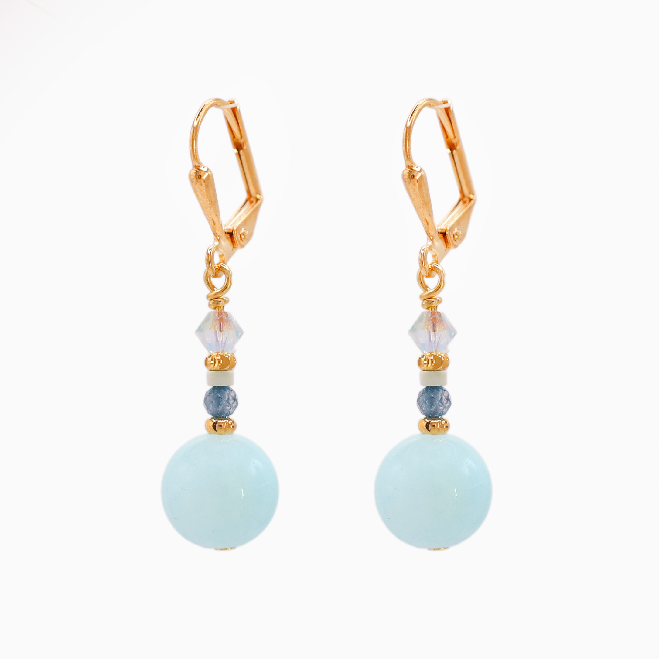 Inspired by the gentle rhythm of the Atlantic Ocean, the Atlantic Drift Jade Linear Earrings are a refined blend of movement, colour, and light. Handcrafted in Ireland, these coastal inspired earrings feature soft aqua tones, sea-inspired blues, finished with warm gold accents and sparkling Swarovksi Crystals.