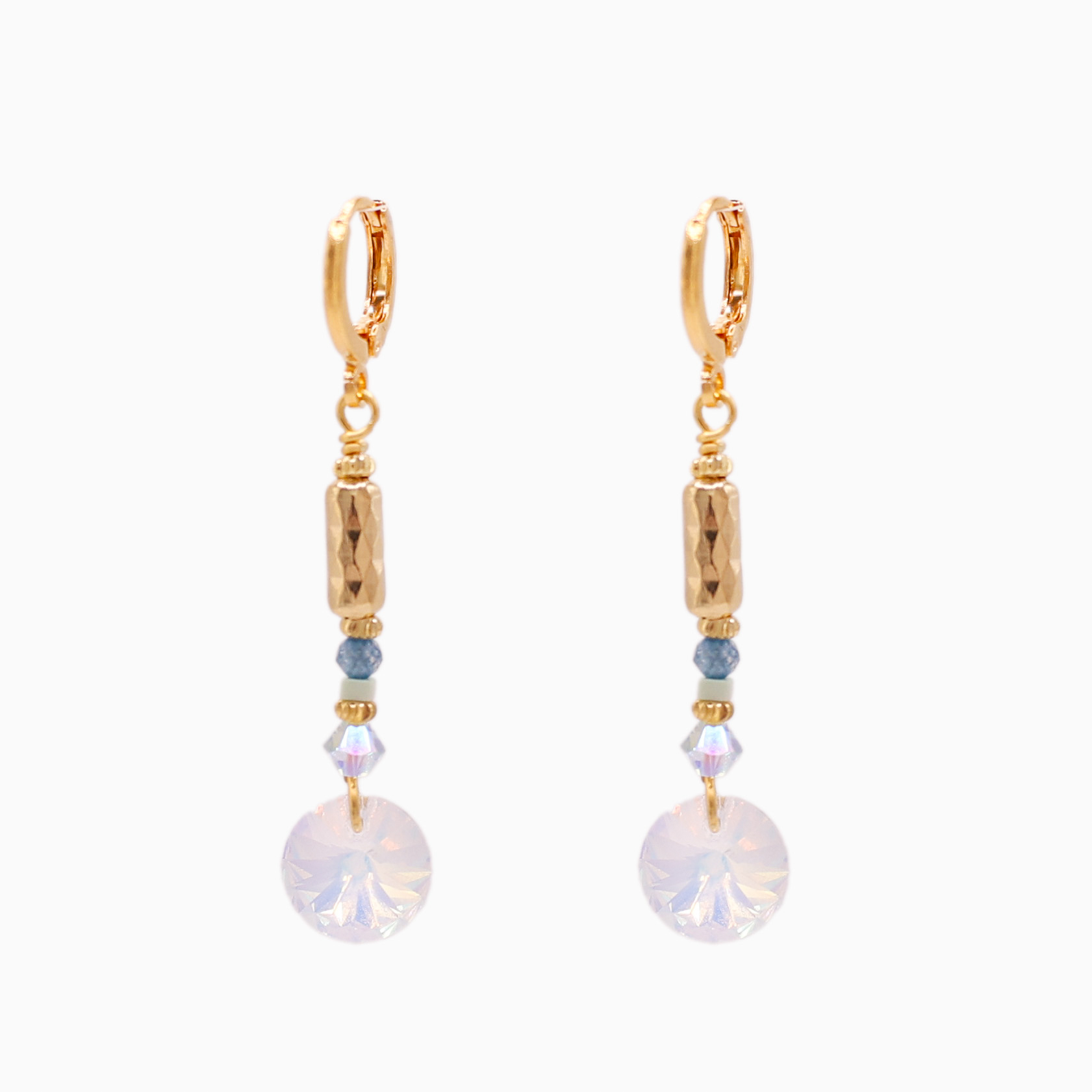 Inspired by the gentle rhythm of the Atlantic Ocean, the Atlantic Drift Sparkle Earrings are a refined blend of movement, colour, and light. Handcrafted in Ireland, these elegant Swarovski crystal earrings feature soft aqua tones, sea-inspired blues, finished with warm gold accents and sparkling Swarovski Crystals.