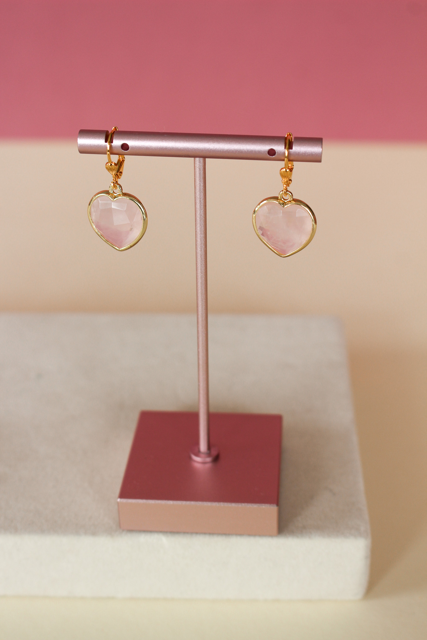 These pink quartz heart shaped earrings use gorgeous detailing, each one unique and telling its own story.