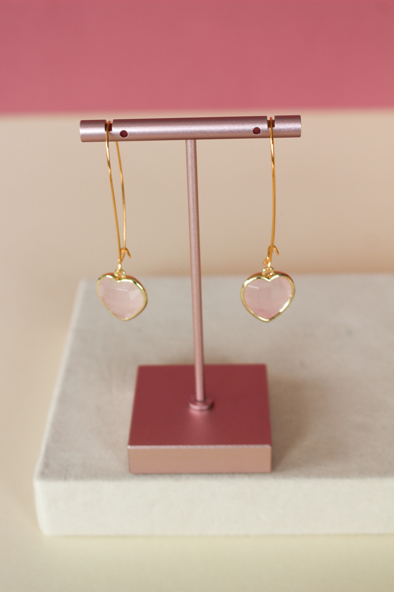 These pink quartz heart shaped earrings use gorgeous detailing, each one unique and telling its own story.