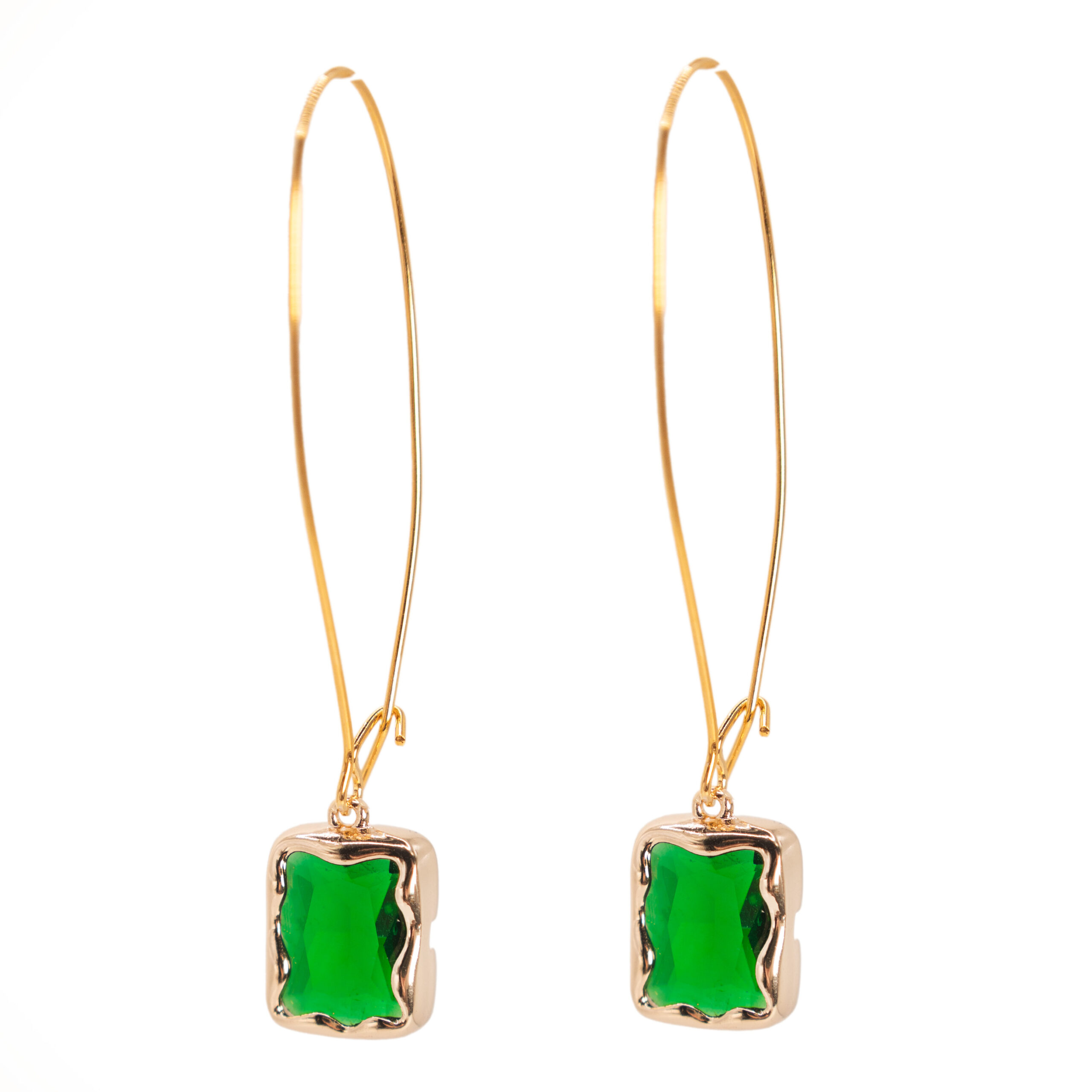 Gorgeous emerald green stones with pop art gold metal accents, great versatile earrings for any occasion. The stones are suspended on a long gold plated French hook which is hypoallergenic, lead & nickel free.