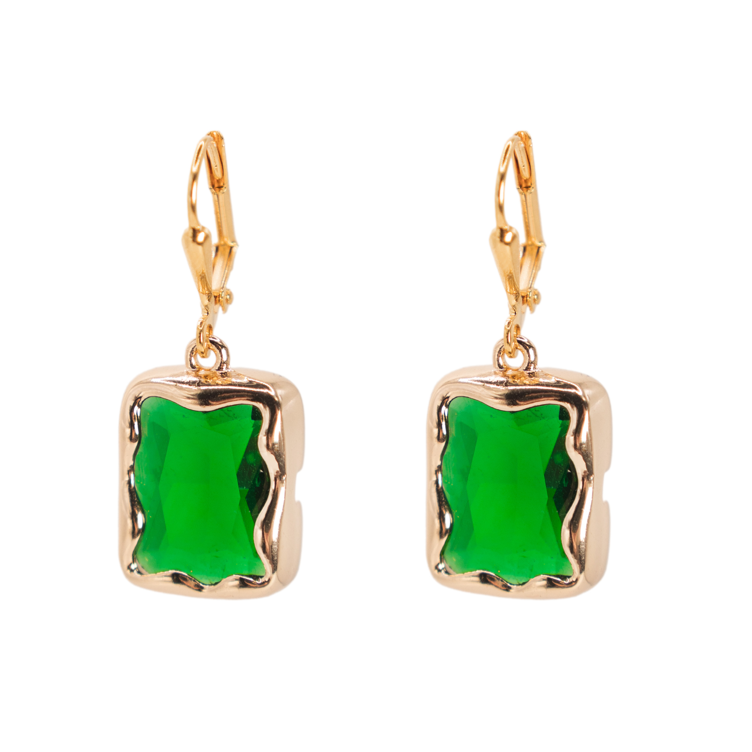 Gorgeous emerald green stones with pop art gold metal accents, great versatile earrings for any occasion. The stones are suspended on short gold plated French hooks which are hypoallergenic, lead & nickel free.