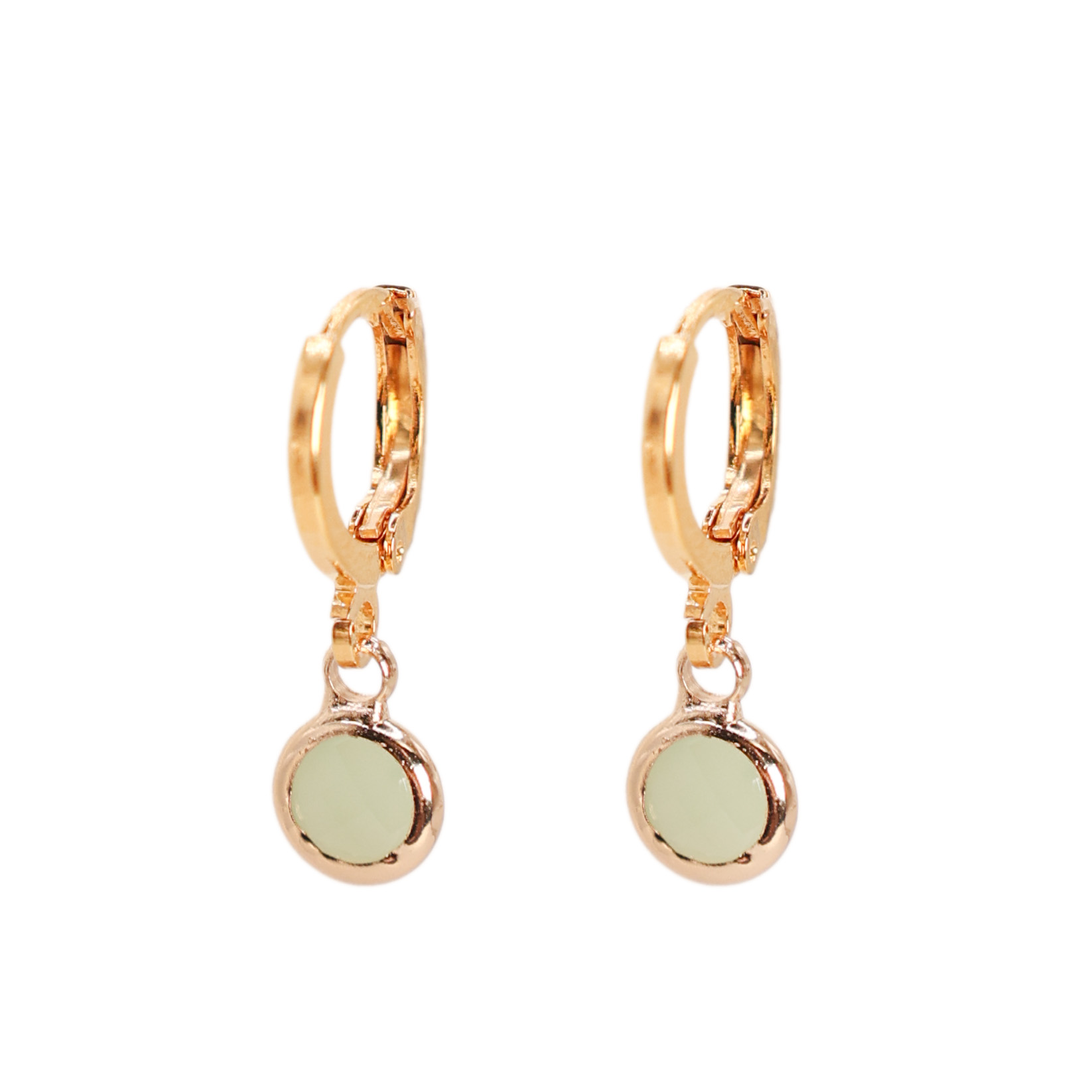 Gorgeous sage green jade gemstone huggie earrings gold metal accents, great versatile earrings for any occasion. The stones are suspended on gold plated huggie hooks which are hypoallergenic, lead & nickel free.